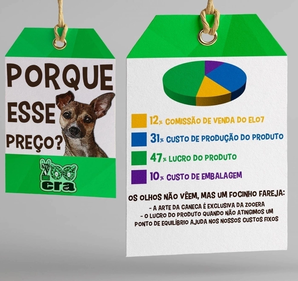 E pra você que tem dúvidas em relação ao porque desse preço do produto, utilizamos a 'Etiqueta Virtual', uma forma pra que você possa ver quais são os percentuais que formam nosso preço, afinal nossa patinha da transparência existe pra ser usada. Você pode ver a etiqueta virtual na última foto de cada produto.