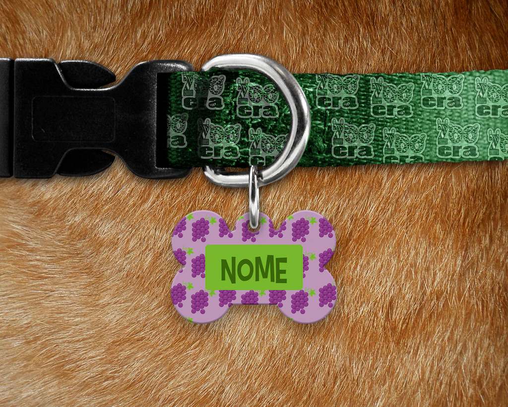 Temos três modelos de tag de identificação para você escolher, o de osso com tamanho de 4x2,7cm, o redondo G com 3,1x3,6cm (ideal pra cães adultos) e o redondo P com 2,5x3,1cm (ideal pra gatos e cães filhotes ou minis). Além disso você pode decidir em ter uma argola ou fecho de gancho pra prender na coleira. A frente é personalizada com nossa estampa exclusiva, além do nome do seu pet, já o verso pode ser personalizado com o nome do humano governado e os dados pra contato caso ele se perca.