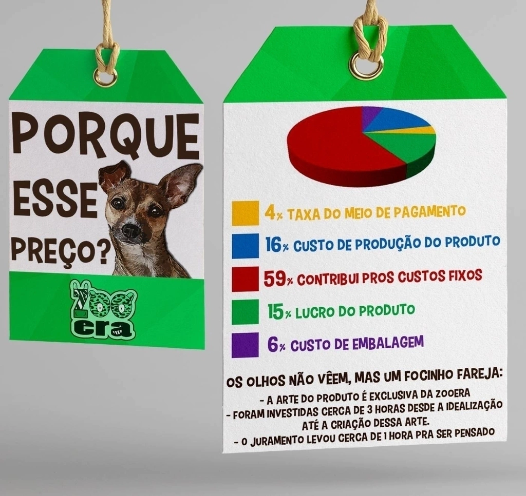 E pra você que tem dúvidas em relação ao porque desse preço do produto, utilizamos a 'Etiqueta Virtual', uma forma pra que você possa ver quais são os percentuais que formam nosso preço, afinal nossa patinha da transparência existe pra ser usada. Você pode ver a etiqueta virtual na última foto de cada produto.